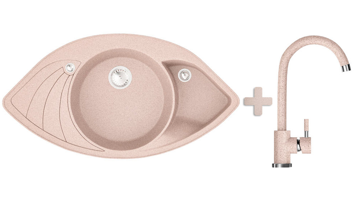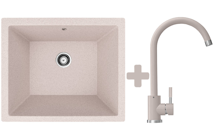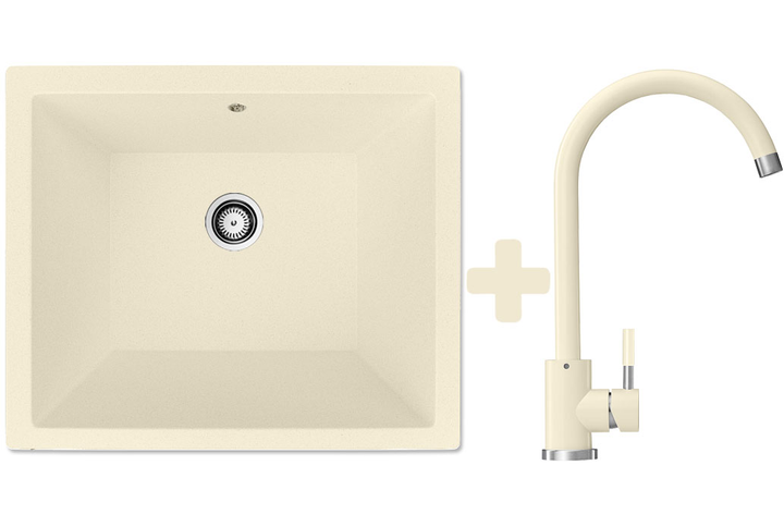 Комплект: мийка гранітна Stella Lion Бежевий + Кран