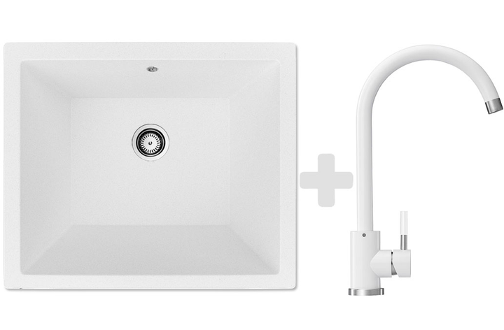 Комплект: мийка гранітна Stella Lion Білий + Кран