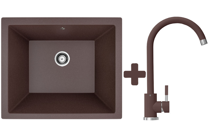 Комплект: мийка гранітна Stella Lion Коричневий + Кран