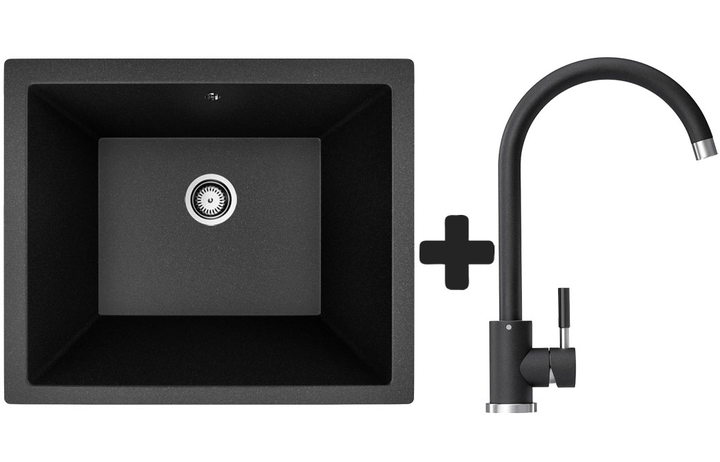 Комплект: мийка гранітна Stella Lion Чорний + Кран