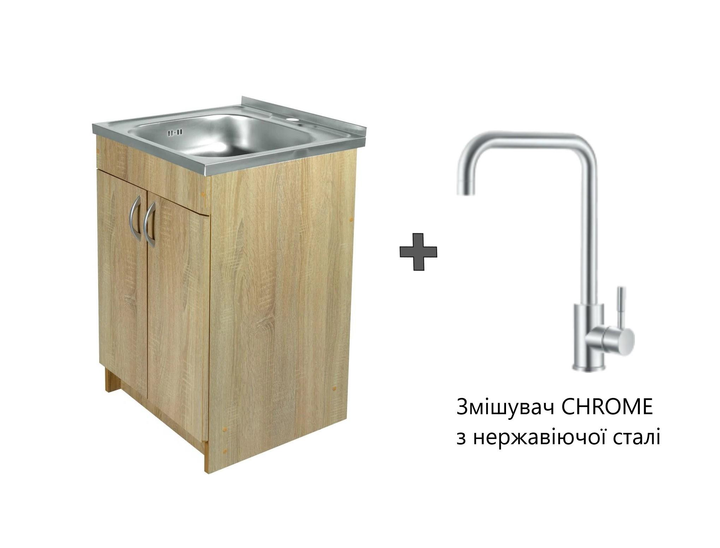 Тумба кухонна Дуб сонома з мийкою 50х50 0,6 мм, змішувач CHROME з нержавіючої сталі, з сифоном
