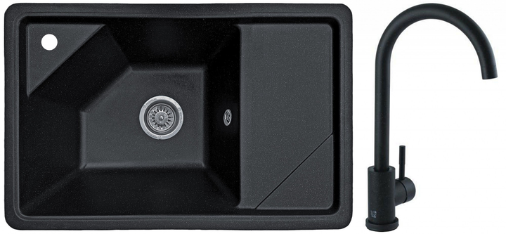 Мийка кухонна, гранітна, прямокутна Valetti 64T 72х46см Чорна + зішувач