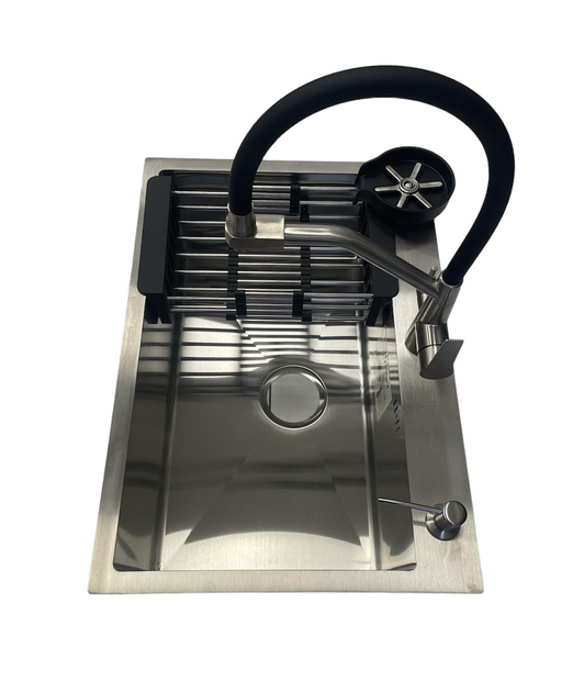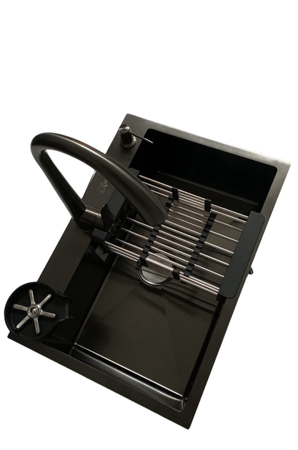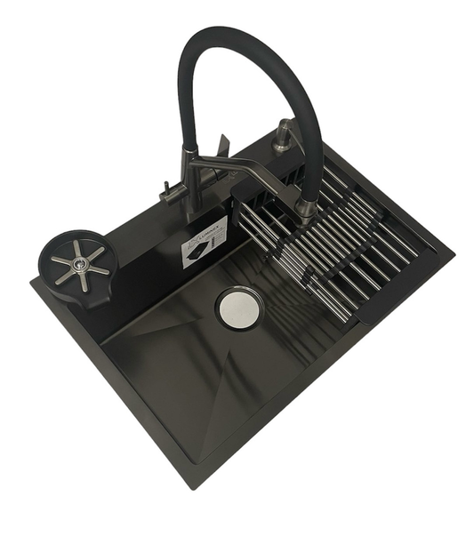 Мийка чорна сталева кухонна Luminex 6545 PVD у складі зі змішувачем, дозатором мийного, сифона та кошиком