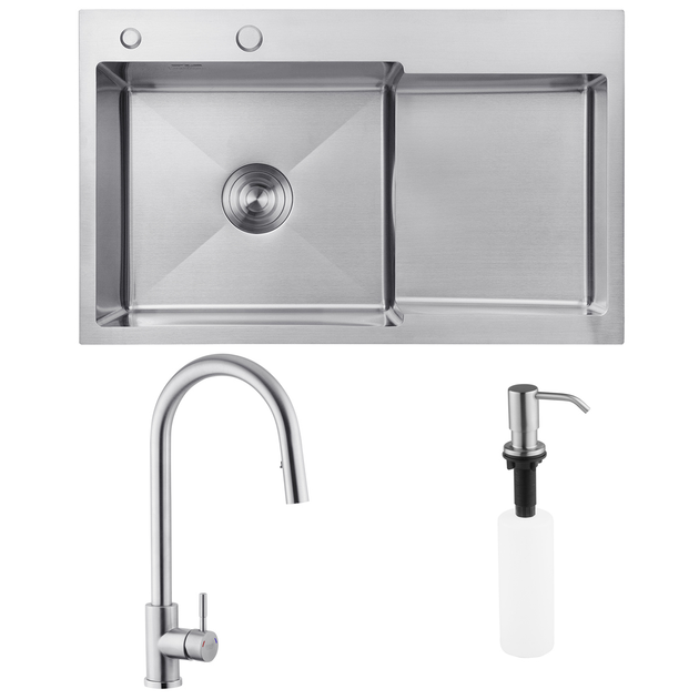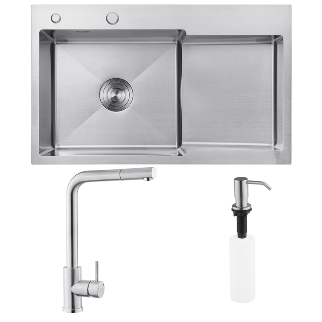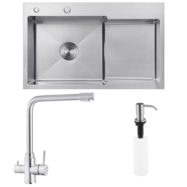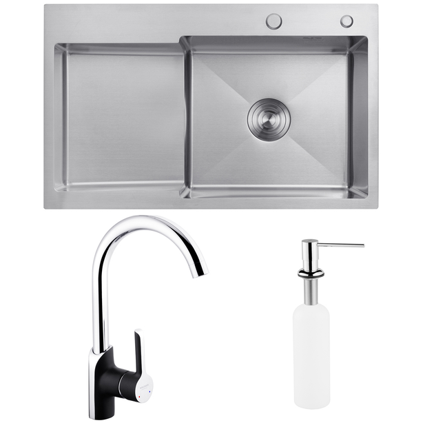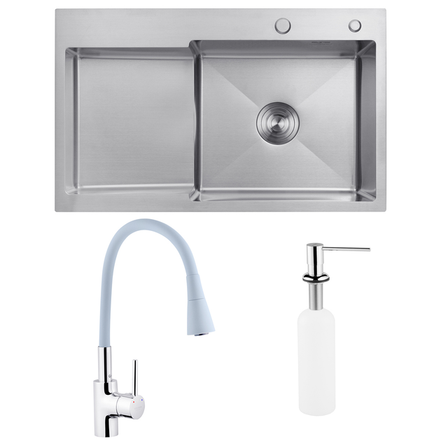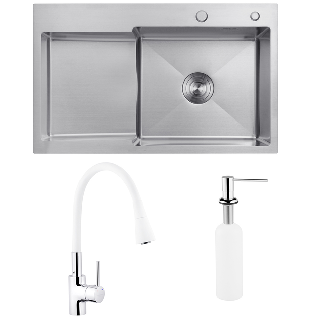 Набір 3 в 1 кухонне миття Kroner KRP Gebrstet - 7848LHM + змішувач + дозатор SET-2215-7