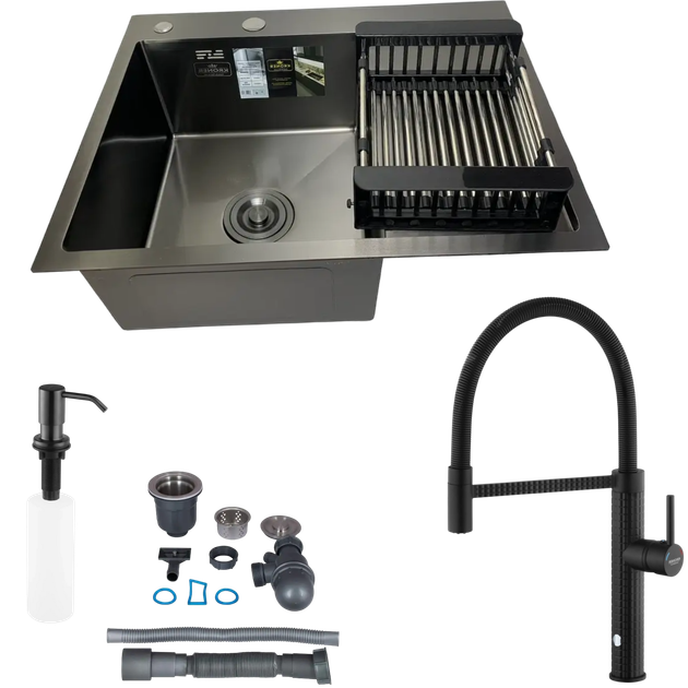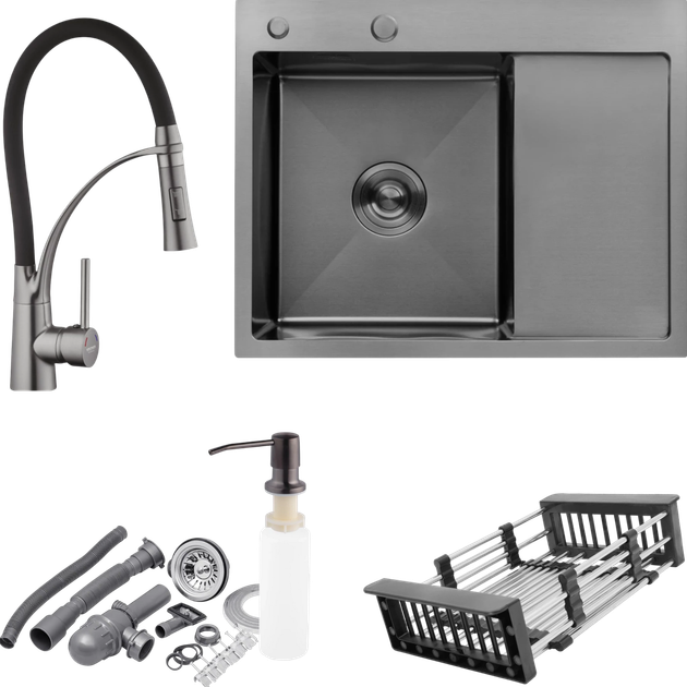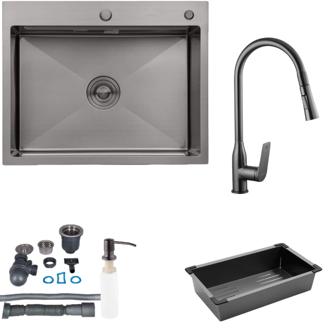 Комплект кухонної мийки Kroner KRP Schwarze - 6350HM PVD (3.0/1.0 мм)