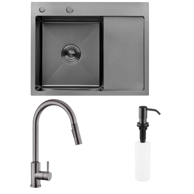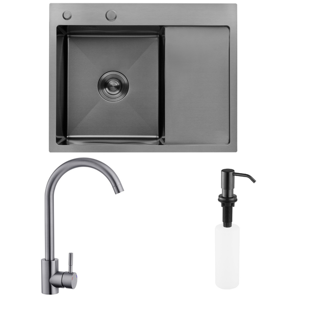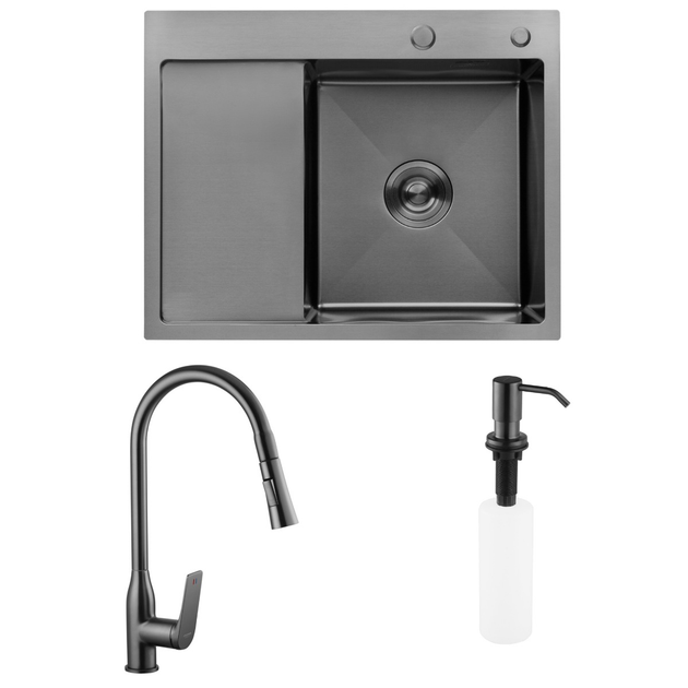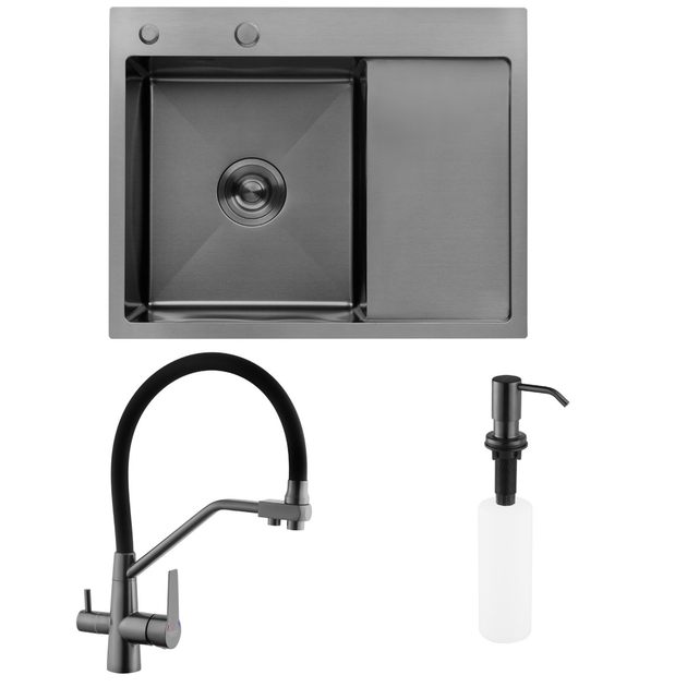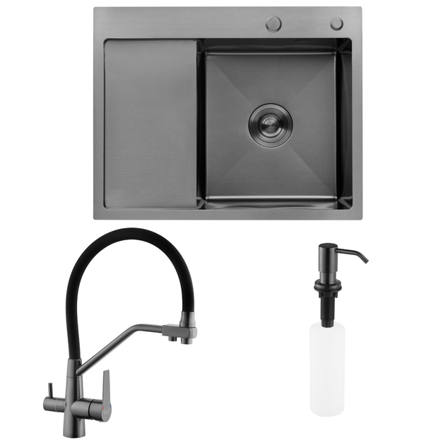 Набір 3 в 1 кухонне миття Kroner KRP Schwarze - 6350LHM PVD + змішувач + дозатор SET-2211-3
