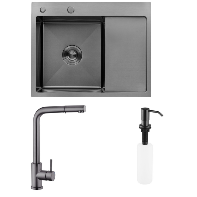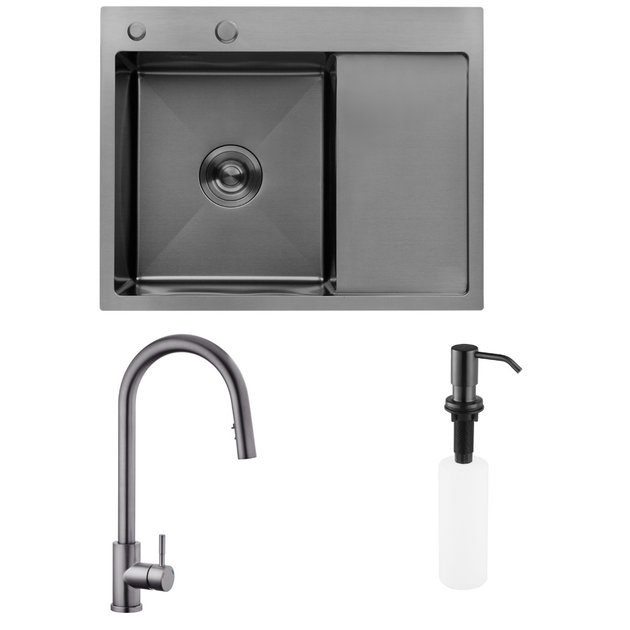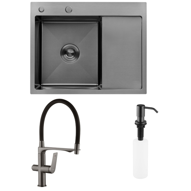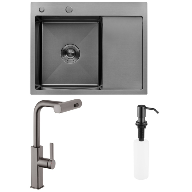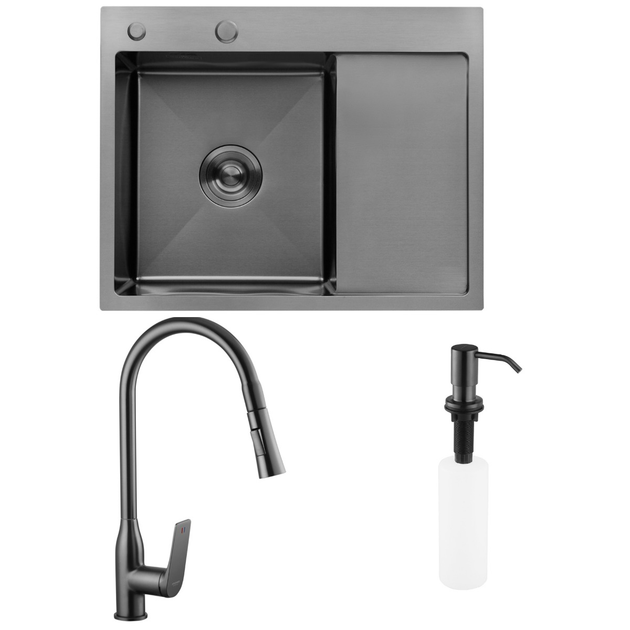 Набір 3 в 1 кухонне миття Kroner KRP Schwarze - 6350LHM PVD + змішувач + дозатор SET-2211-6