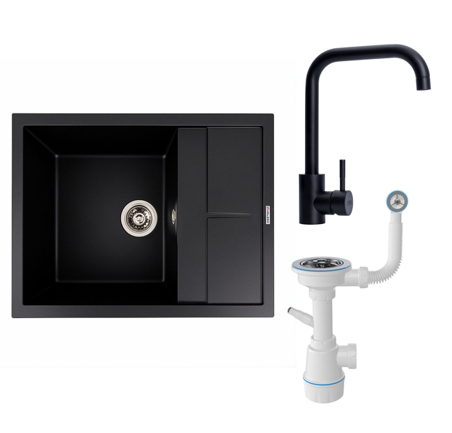 Комплект: Мийка 6550 LOTOS чорна + Змішувач BG77 чорний + Сифон 1041