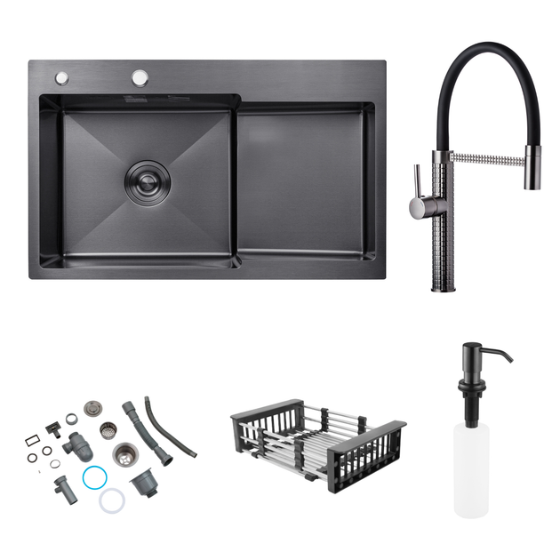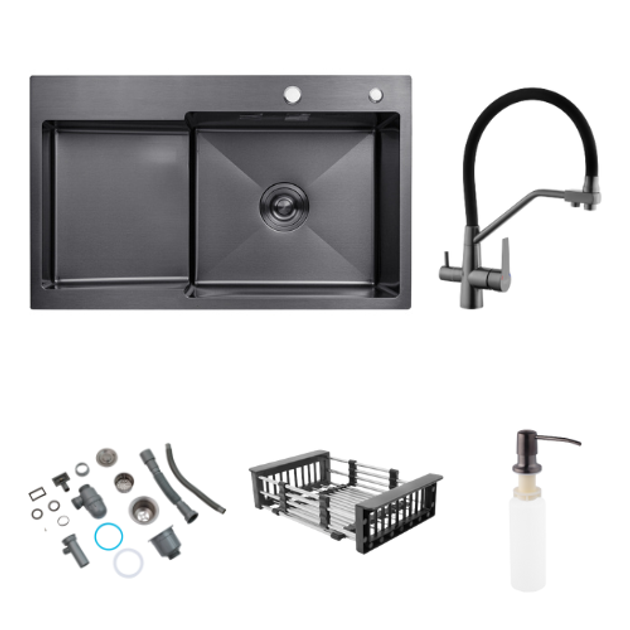 Комплект кухонної мийки KRP Schwarze - 7848LHM PVD - FlexFlow