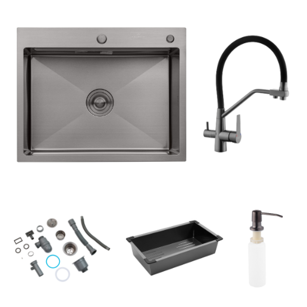 Комплект кухонної мийки KRP Schwarze - 6050HM PVD
