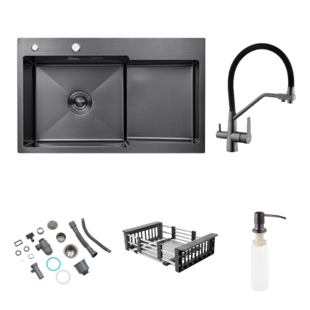 Комплект кухонної мийки KRP Schwarze - 7848LHM PVD