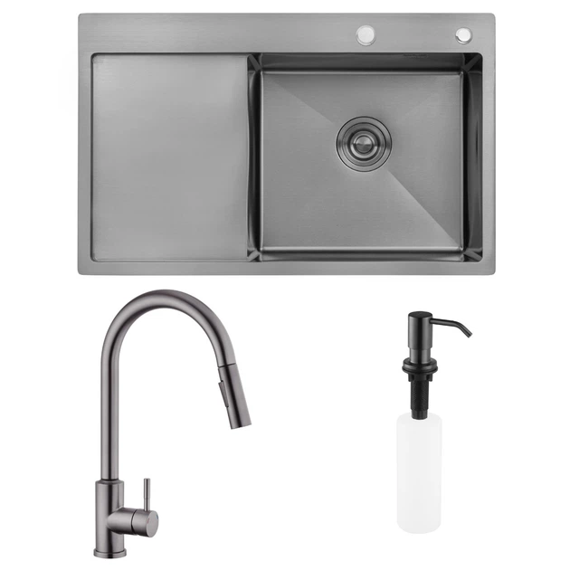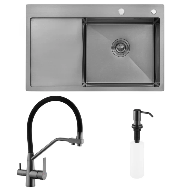 Набір 3 в 1 кухонне миття Kroner KRP Schwarze - 7849RHM PVD + змішувач + дозатор SET-2200-7