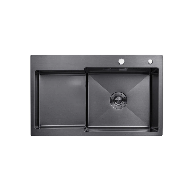 Кухонна мийка з нержавіючої сталі Kroner KRP Schwarze - 78х48LHM PVD з крилом (3/1 мм), чорна