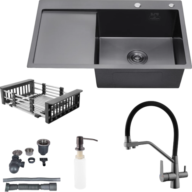 Кухонне миття 4-в-1 (комплект) Kroner KRP Schwarze - 78х48RHM PVD (3.0/1.0 мм) R