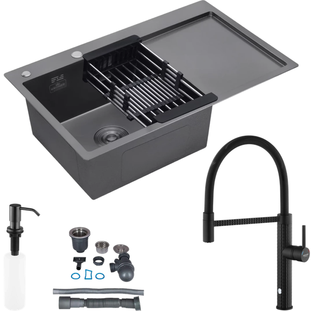Кухонне миття 4-в-1 (комплект) Kroner KRP Schwarze - 7849 RHM PVD (3/1 мм)