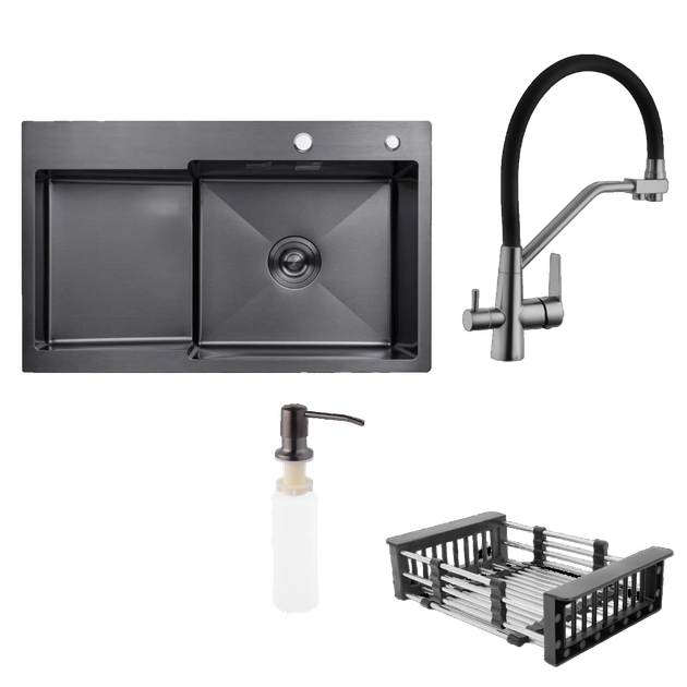 Набір 3 в 1 кухонне миття Kroner KRP Schwarze - 7849RHM PVD + змішувач + дозатор SET-2200-6
