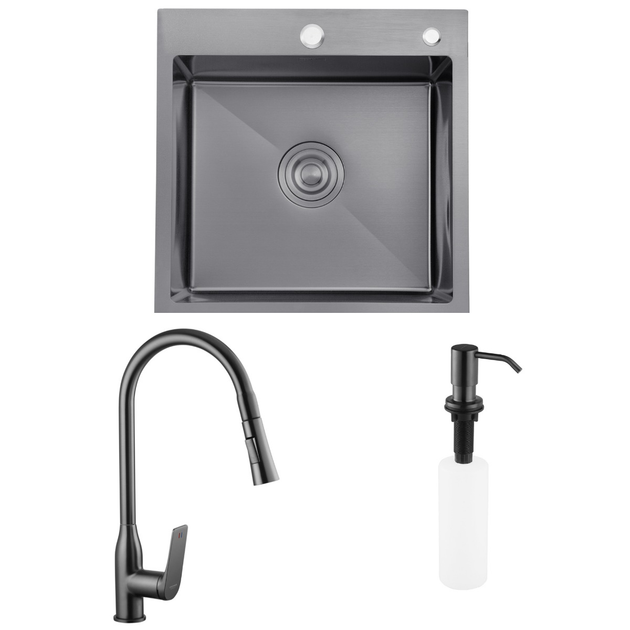 Набір 3 в 1 кухонне миття Kroner KRP Schwarze - 5050HM PVD + змішувач + дозатор SET-2203-6