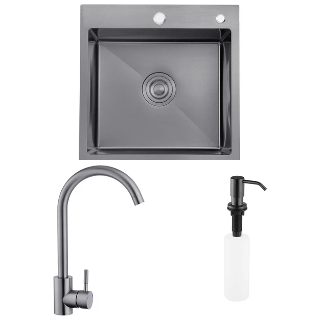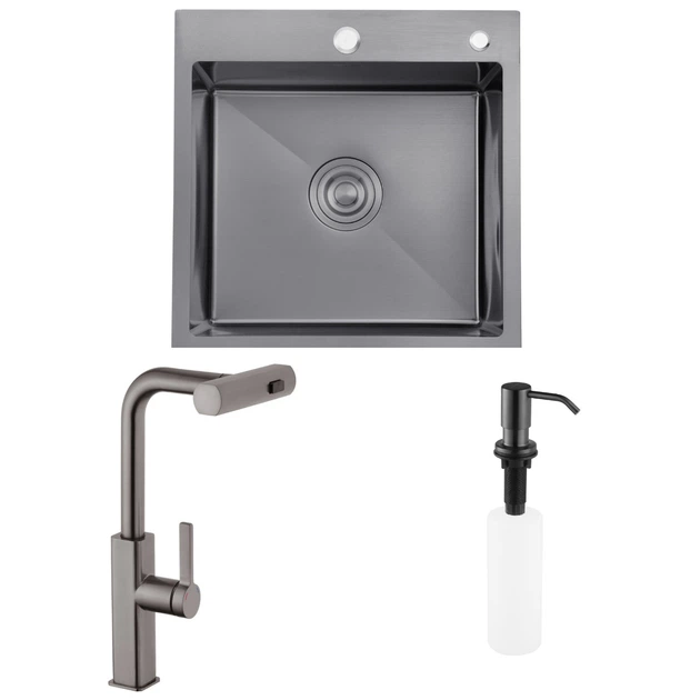 Набір 3 в 1 кухонне миття Kroner KRP Schwarze - 5050HM PVD + змішувач Kroner KRP Edelstahl Klassisch - PVD03817BLK + дозатор