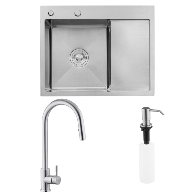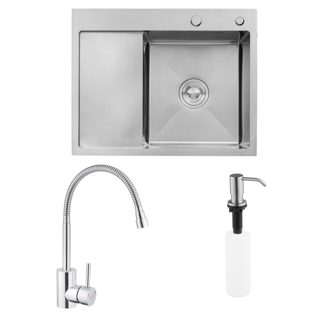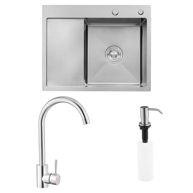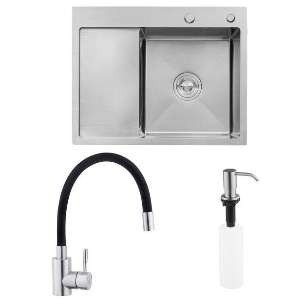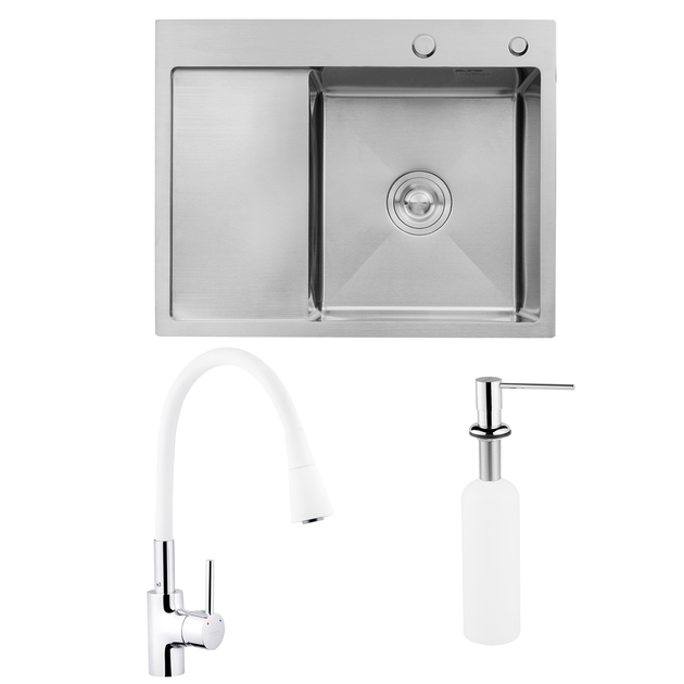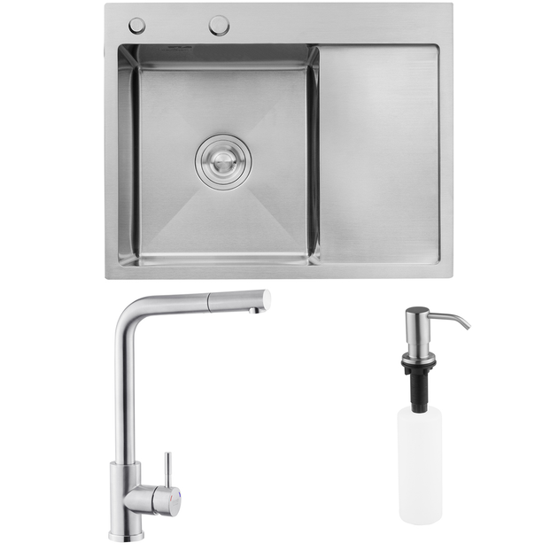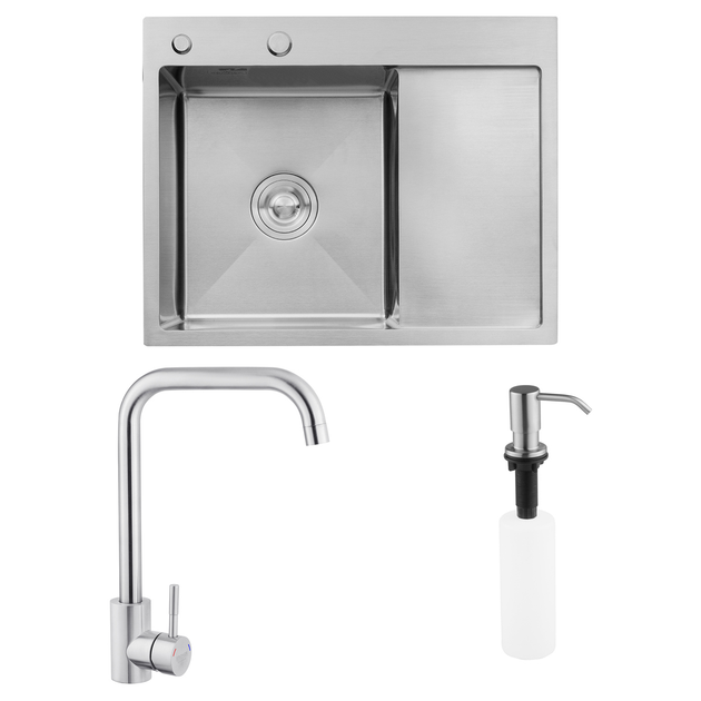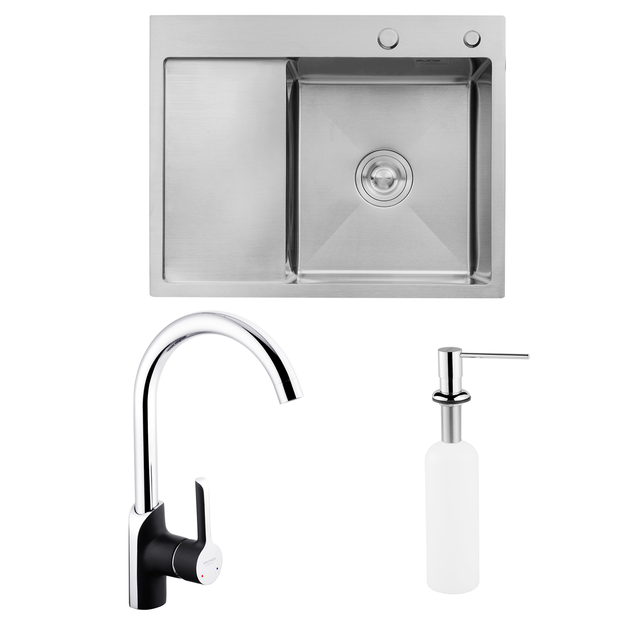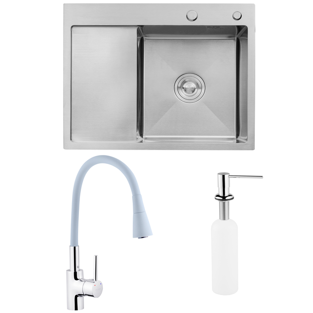 Набір 3 в 1 кухонне миття Kroner KRP Gebrstet - 6350LHM + змішувач + дозатор SET-2218-9