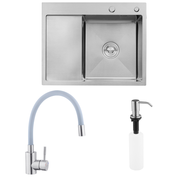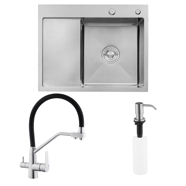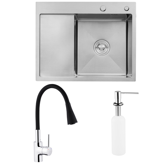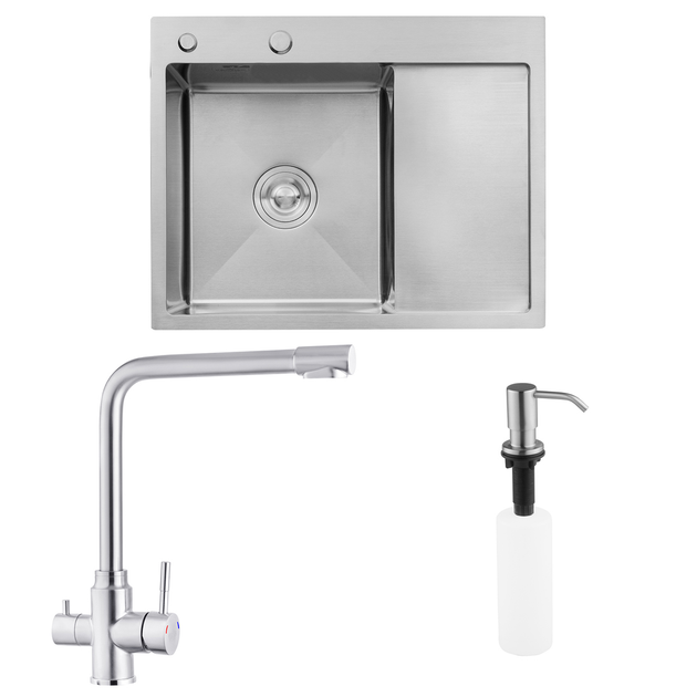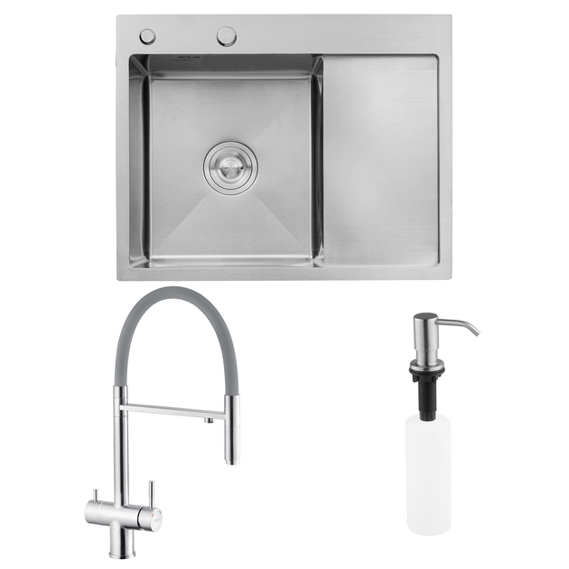 Набір 3 в 1 кухонне миття Kroner KRP Gebrstet - 6350LHM + змішувач + дозатор SET-2218-5