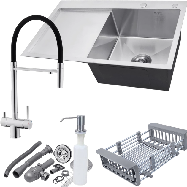 Набір 3 в 1 кухонне миття Kroner KRP PVD Schwarze - 7848LHM + змішувач Kroner KRP Edelstahl Klassisch - PVD03817BLK + дозато