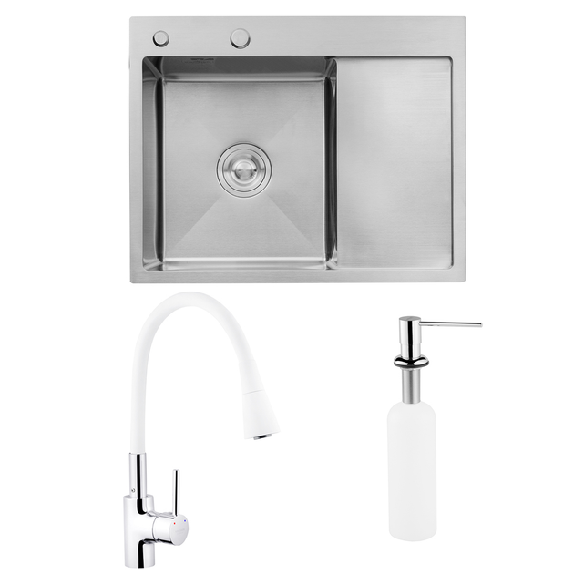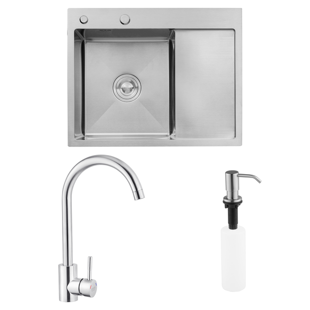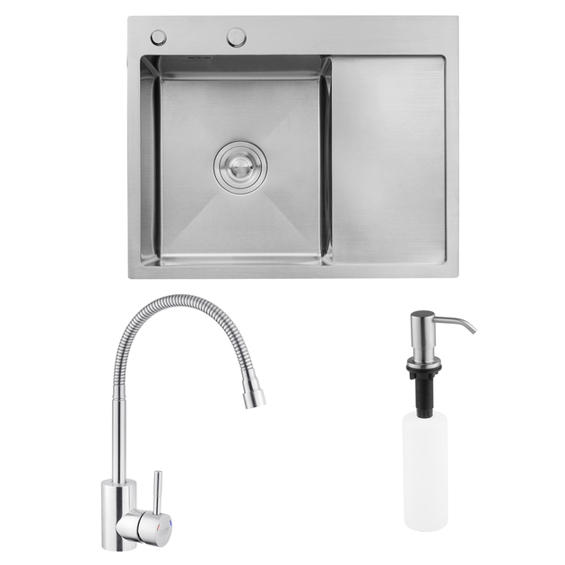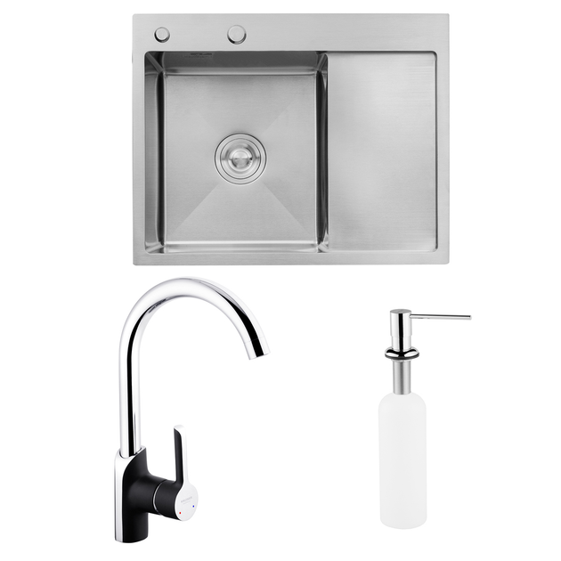 Набір 3 в 1 кухонне миття Kroner KRP Gebrstet - 6350LHM + змішувач + дозатор SET-2218-16