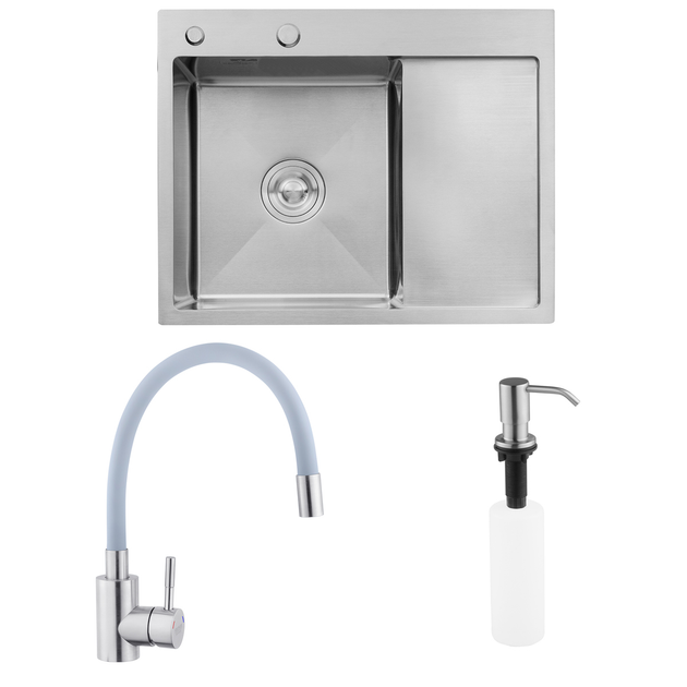 Набір 3 в 1 кухонне миття Kroner KRP Gebrstet - 6350LHM + змішувач + дозатор SET-2218-12