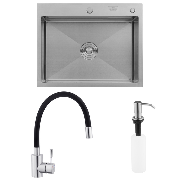 Набір 3 в 1 кухонне миття Kroner KRP Gebrstet - 6350HM + змішувач + дозатор SET-2214-16