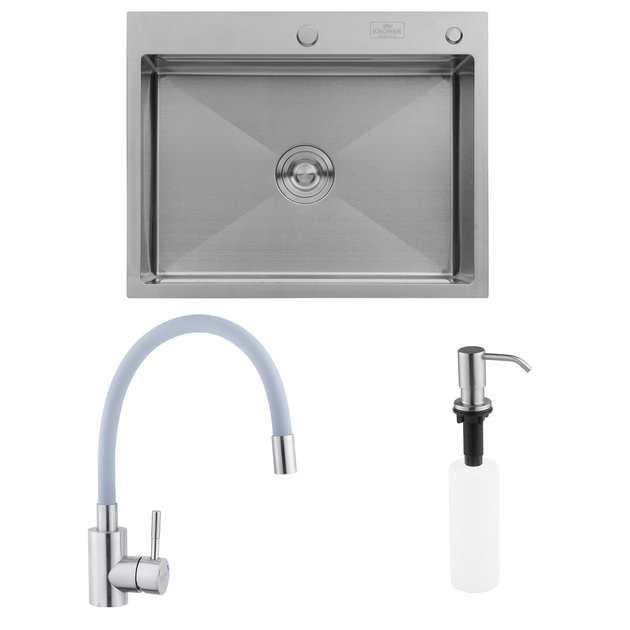 Набір 3 в 1 кухонне миття Kroner KRP Gebrstet - 6350HM + змішувач + дозатор SET-2214-10
