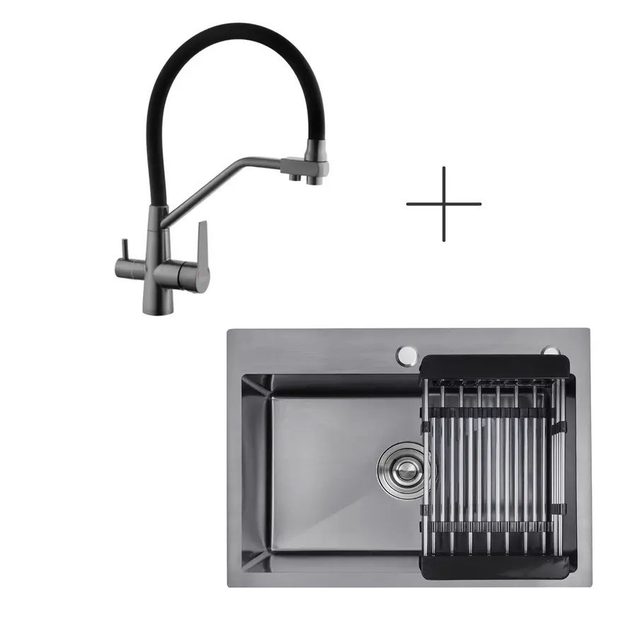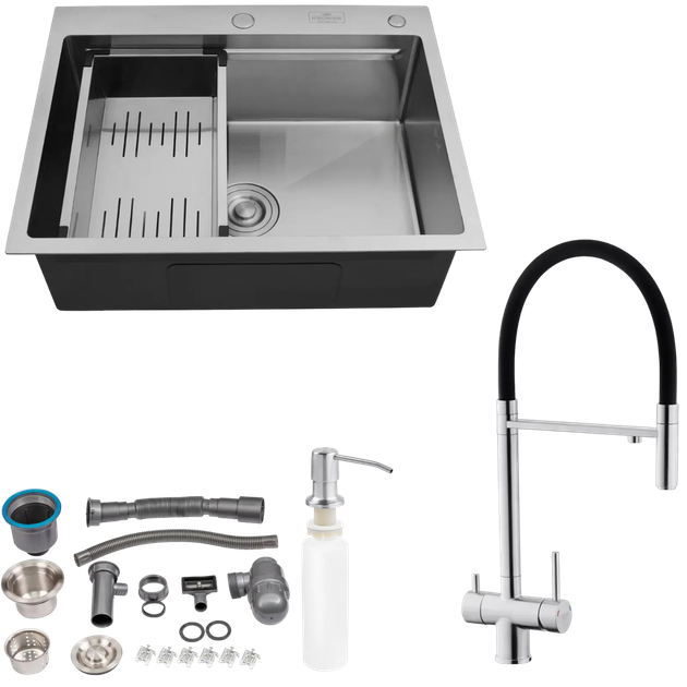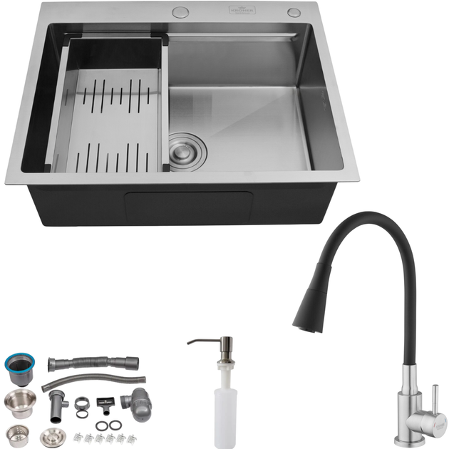 Набір 3 в 1 кухонне миття Kroner KRP Gebrstet - 6350HM + змішувач + дозатор SET-2214-11