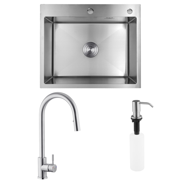 Набір 3 в 1 кухонне миття Kroner KRP Gebrstet - 6050HM + змішувач + дозатор SET-2221-8