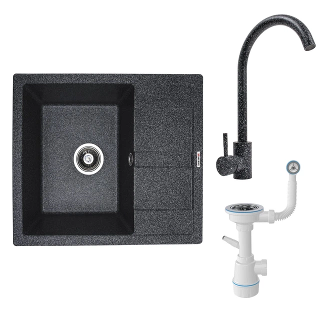 Комплект: Мийка Aria 5851 чорна + Змішувач BG76 чорний + Сифон 1041