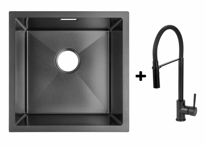 Комплект Gunter&Hauer: Кухонна мийка Olef 4522 Black + Кухонний змішувач ROBUST Black