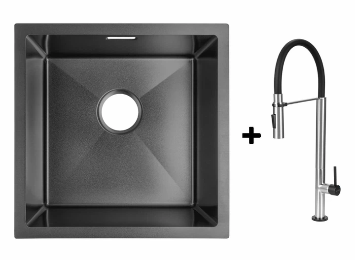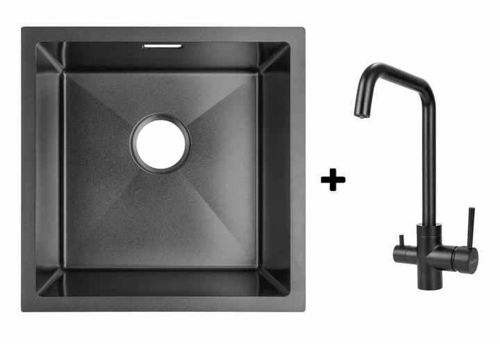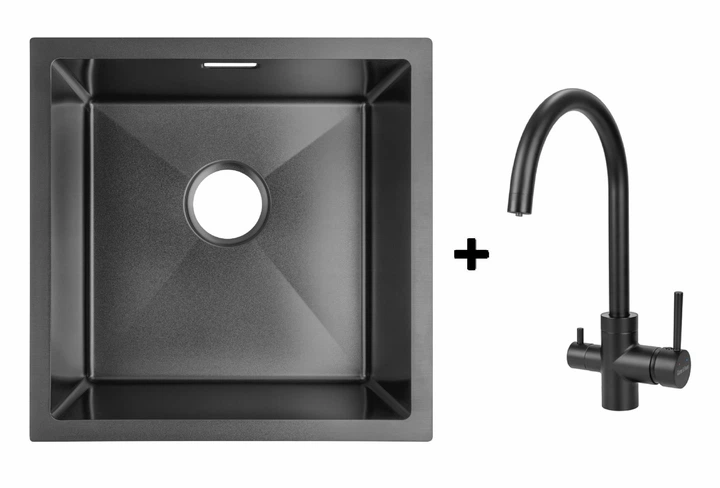 Комплект Gunter&Hauer: Кухонна мийка Olef 4522 Black + Кухонний змішувач HAFEN Black