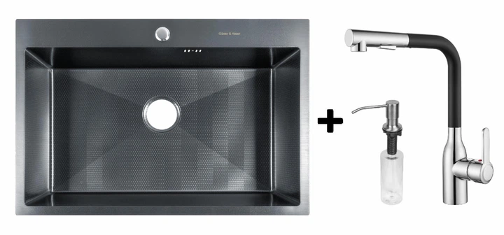 Комплект Gunter&Hauer: Кухонна мийка Odenbach 7522 Black + Кухонний змішувач DUNKEL Cr-Bl + Дозатор SOAP DISPENSER Inox