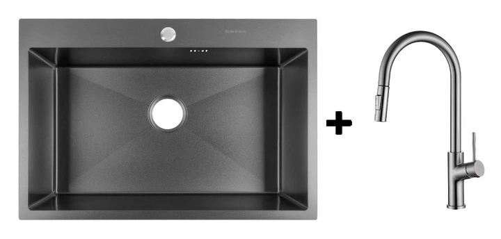 Комплект Gunter&Hauer: Кухонна мийка Odenbach 7522 Black + Кухонний змішувач LUFT Br