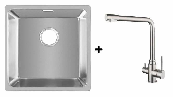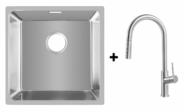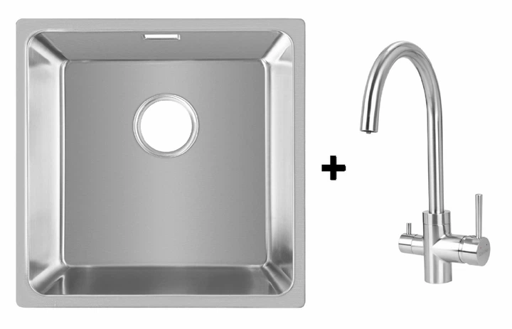 Комплект Gunter&Hauer: Кухонна мийка Felda 4420 IX (44x44 см) + змішувач STROM Brush