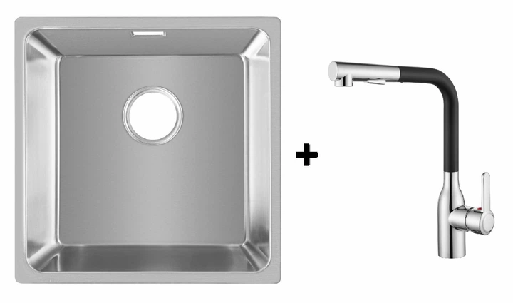 Комплект Gunter&Hauer: Кухонна мийка Felda 4420 IX (44x44 см) + змішувач EDEL Brush Black