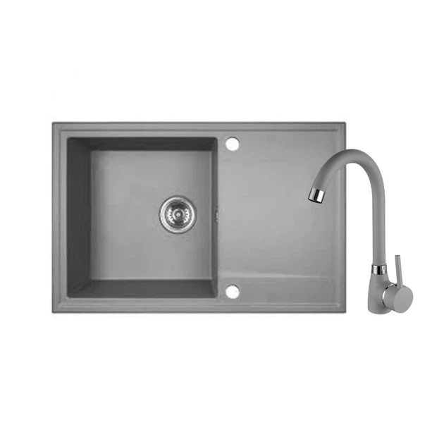 Кухонне миття LAVEO HUNTER Сірий + змішувач