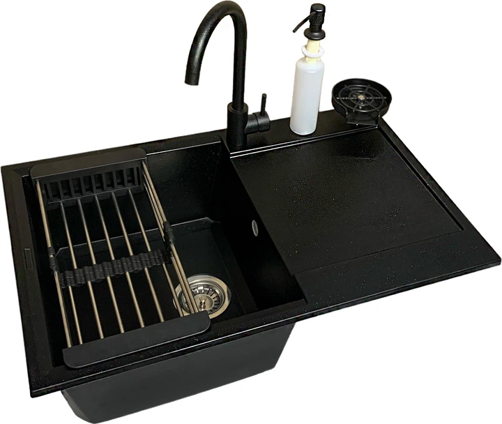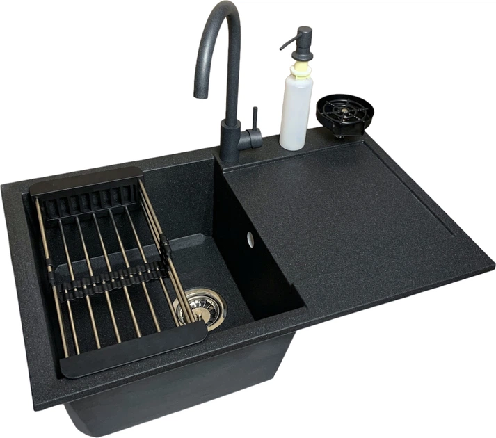 Кухонна мийка ADAMANT Horizon чорна з сифоном + кухонний змішувач + дозатор + ополіскувач склянок + коландер