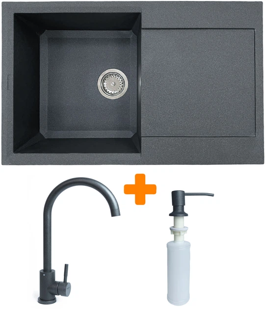 Кухонна мийка ADAMANT Horizon графіт c сифоном Nova + кухонний змішувач та дозатор