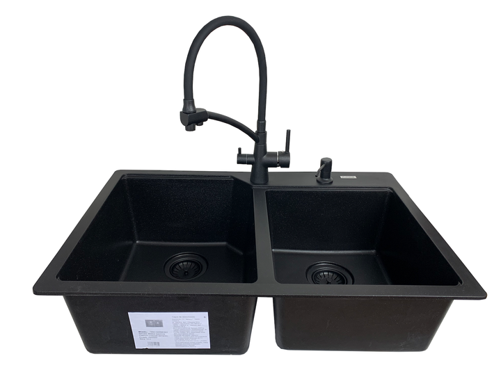 Мийка кухнна гранітна Platinum HARMONY 78*50 (см) чорна змішувач+дозатор+сифон