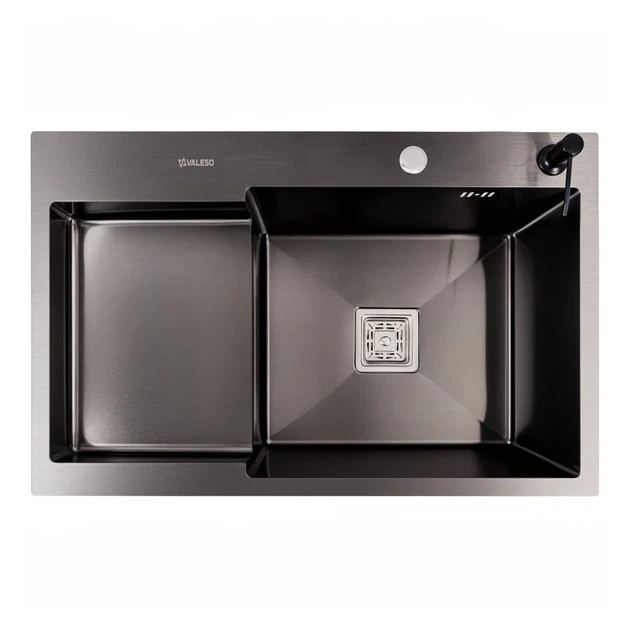 Кухонна мийка нержавійка CM 78*50C R VALESO Handmade PVD чорна з поглибленою полицею (3,0/0,8)