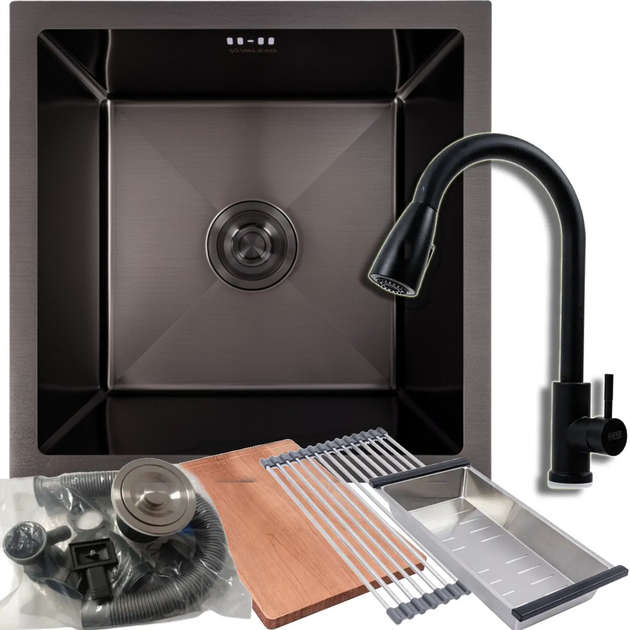Кухонна мийка PVD чорна СМ 44*44 VALESO Handmade (монтаж під стільницю)
