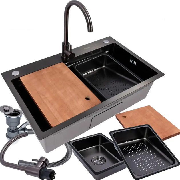 Кухонна мийка CM 75*46B PVD чорна (Work station) Valeso Handmade