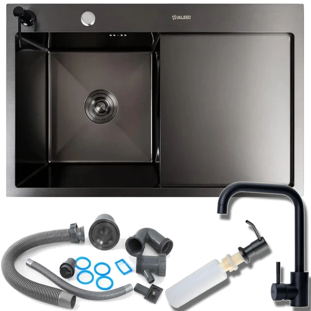 Кухонна мийка CM 78*50 L чорна PVD VALESO Handmade (круглий сифон 3,0/0,8)