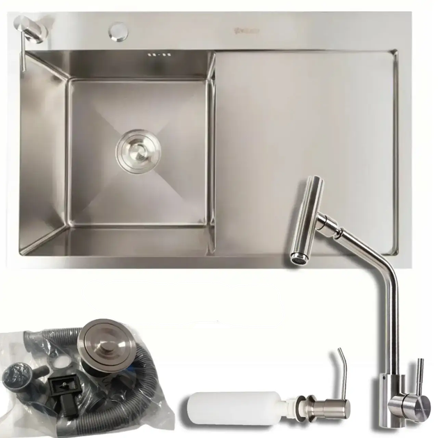Кухонна мийка CM 78*50 L нержавійка VALESO Handmade (круглий сифон 3,0/0,8)