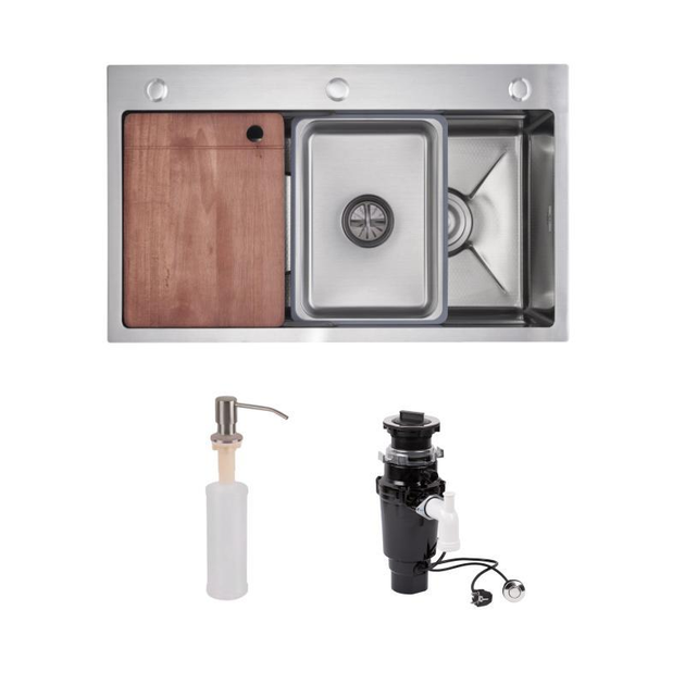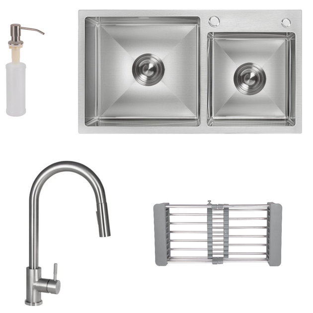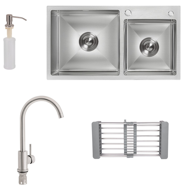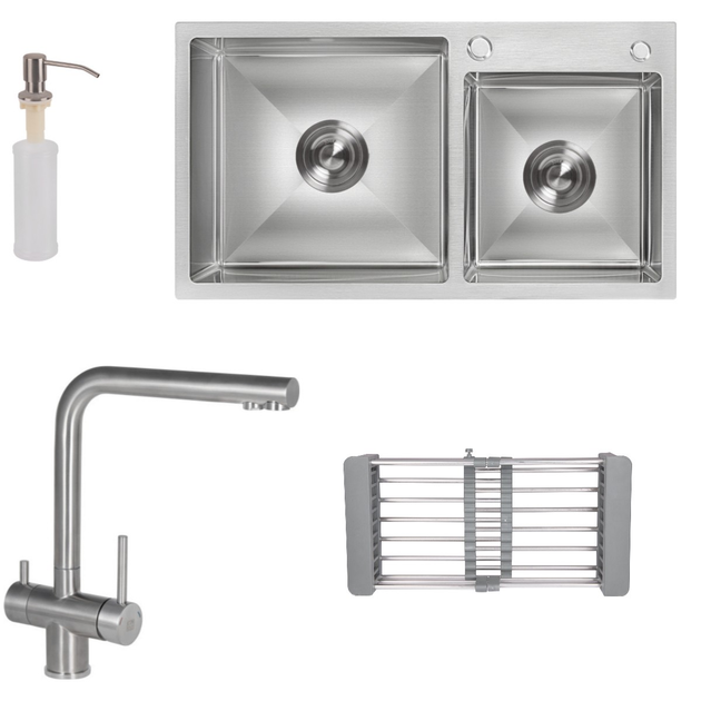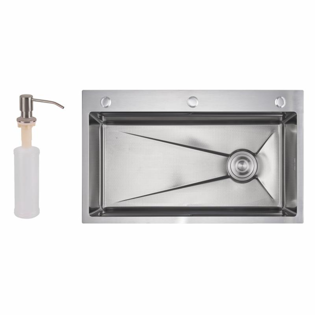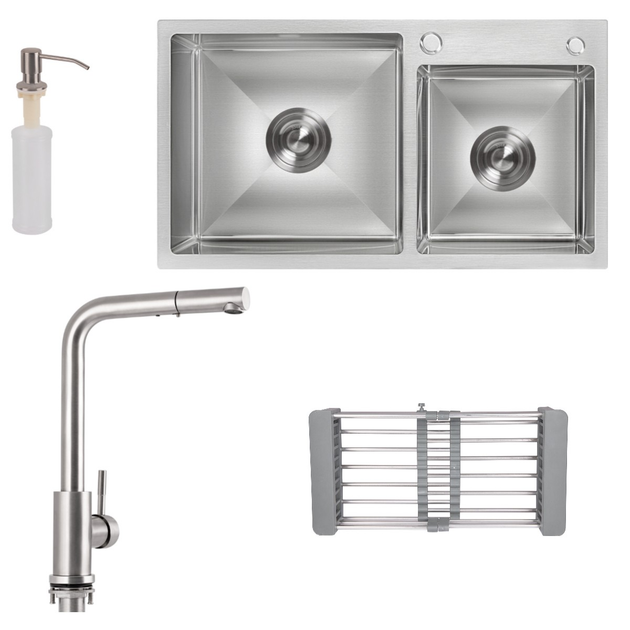 Набір 3 в 1 мийка для кухні із двома чашами інтегрована Lidz Handmade H7843 + Змішувач для кухні Lidz Aria 020F1 + дозатор S