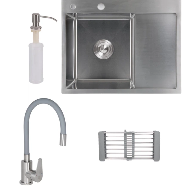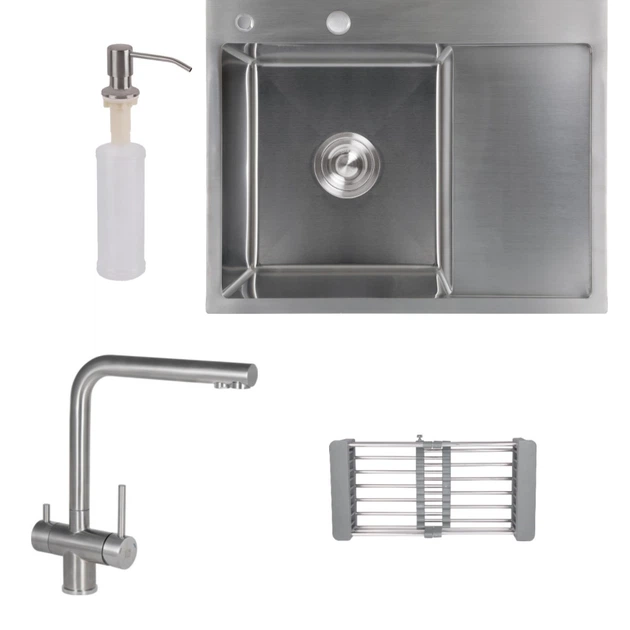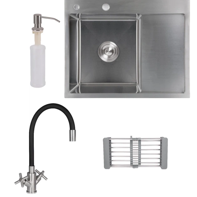 Набір 3 в 1 мийка для кухні інтегрована Lidz Handmade H6350R крил праворуч + Змішувач для кухні Lidz Aria 020F1 + дозатор SE