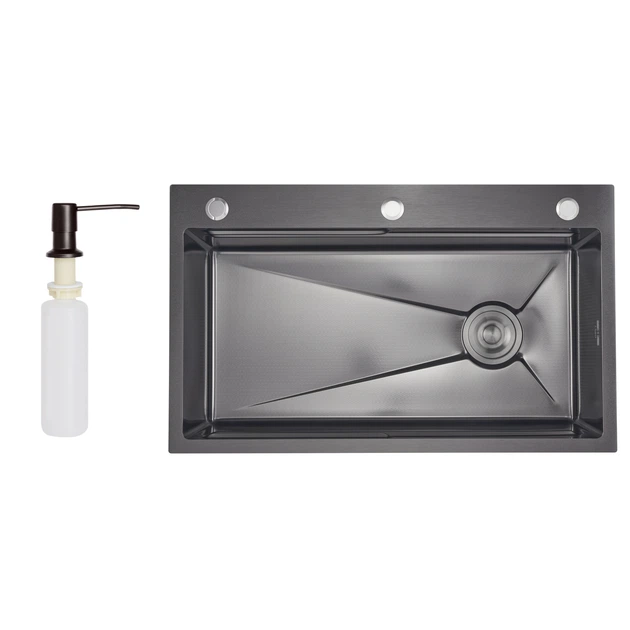 Набір 3 в 1 мийка для кухні із двома чашами інтегрована Lidz Handmade H7843 + Змішувач для кухні Lidz Aria 015F3 + дозатор S